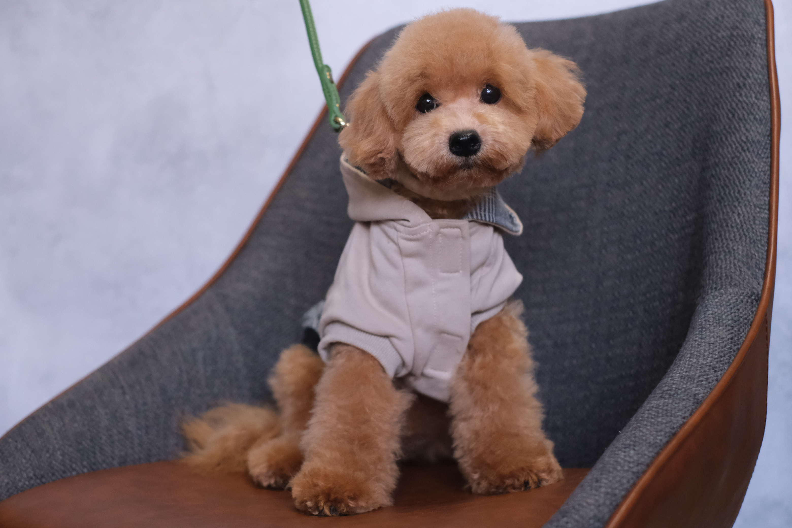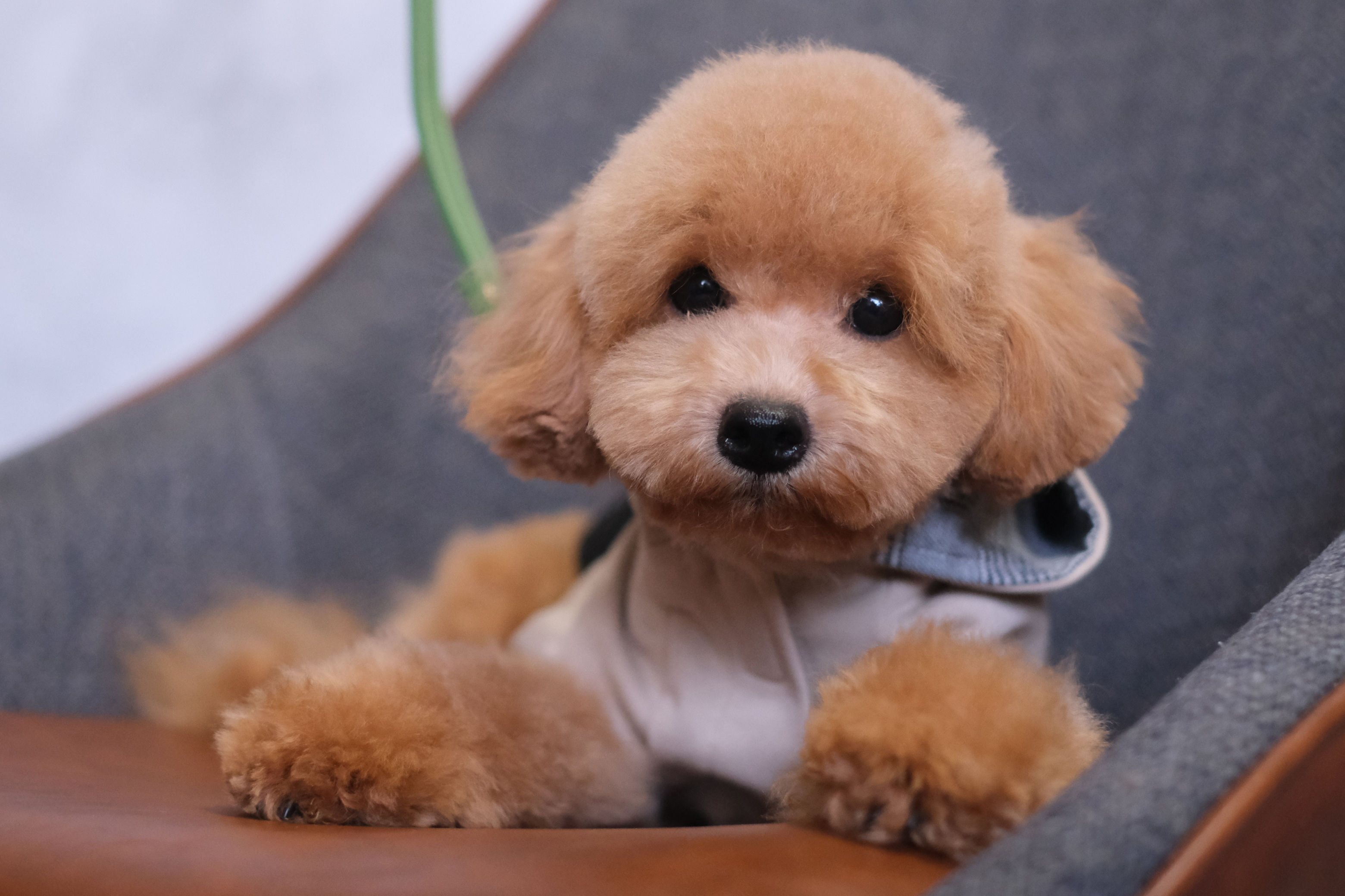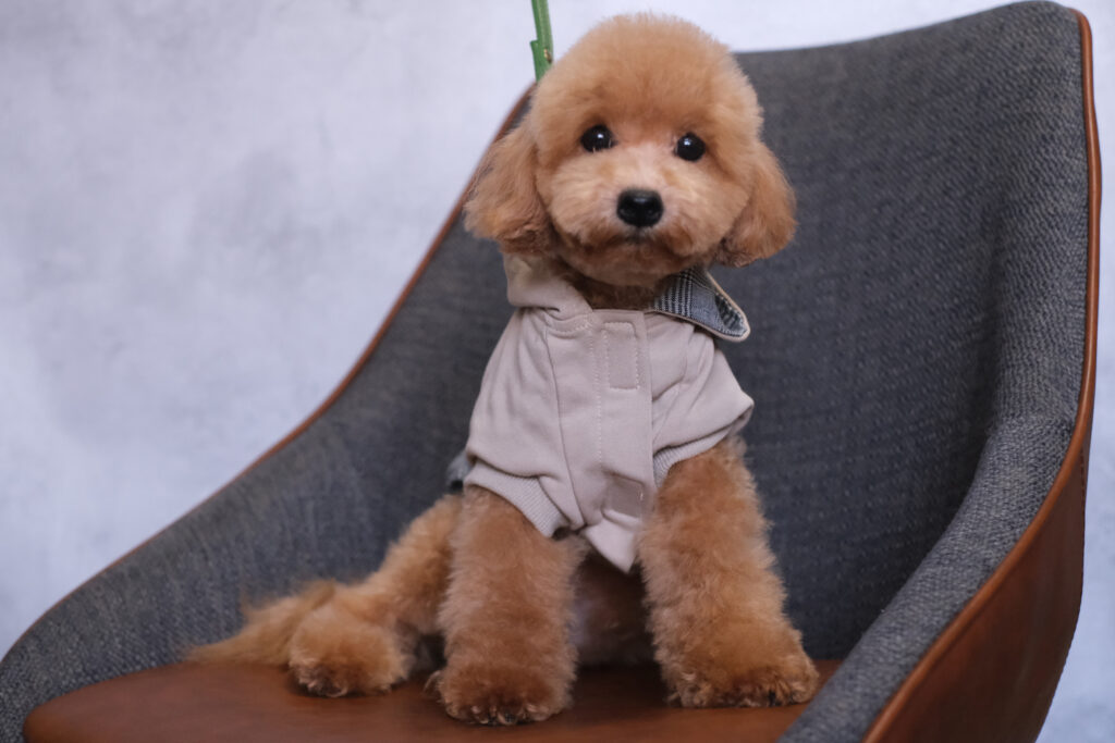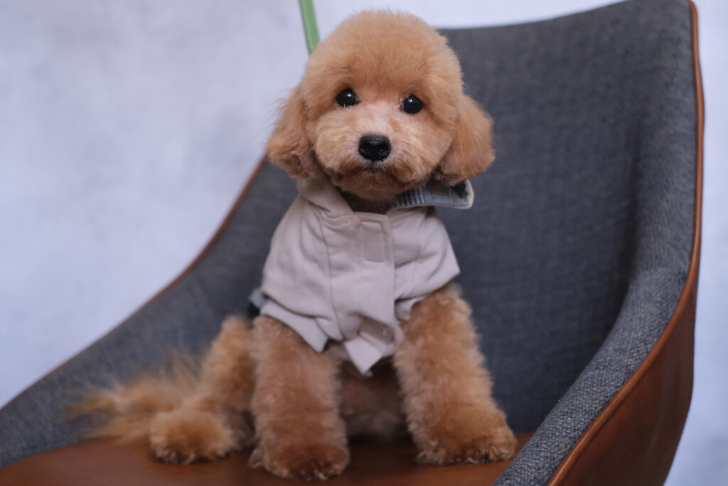 もっこもこの毛量がチャームポイント!爆毛すぎて、ちょっとムッとした表情に見えることもあるトイプードルの男の子です🧸