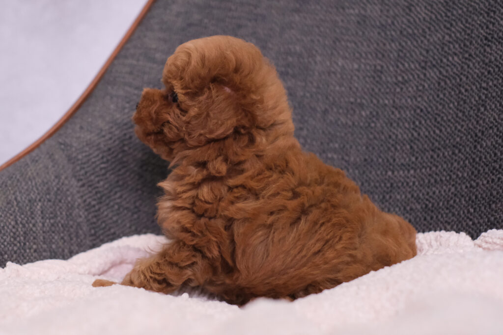 栄養状態も良好で、むちむちころんとした可愛らしい体つきに育っています。現在の体重は630gです。両親ともに小柄な子ですので、成犬時はティーカップ~タイニーサイズ予想の女の子です🐾