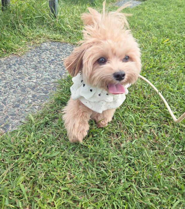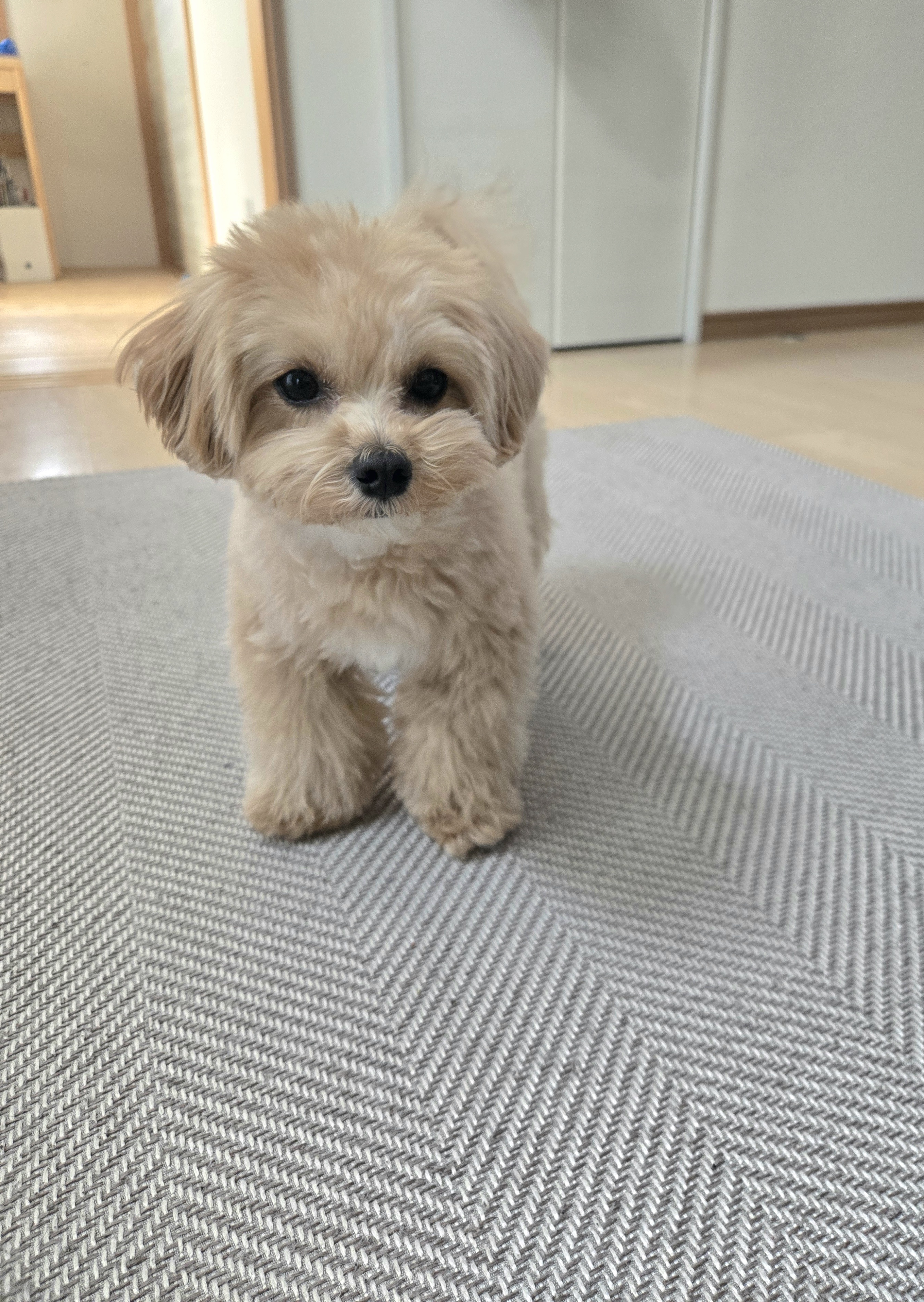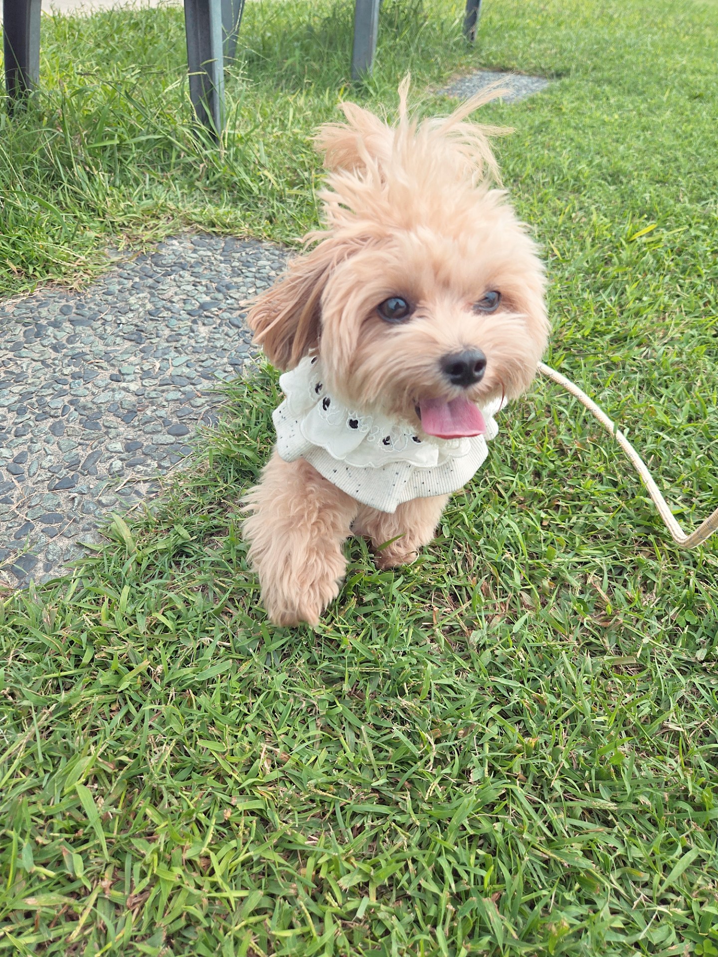 見学の時から人懐っこく常にハイテンションだったむく。小学生の息子2人との相性もぴったりで今では3兄弟として仲良く過ごしています。ブリーダーさんの元でたくさん愛情をかけて頂き、兄弟や他のわんちゃん達と過ごしていたおかげで、わんちゃんも人も大好きな子に育ちました!